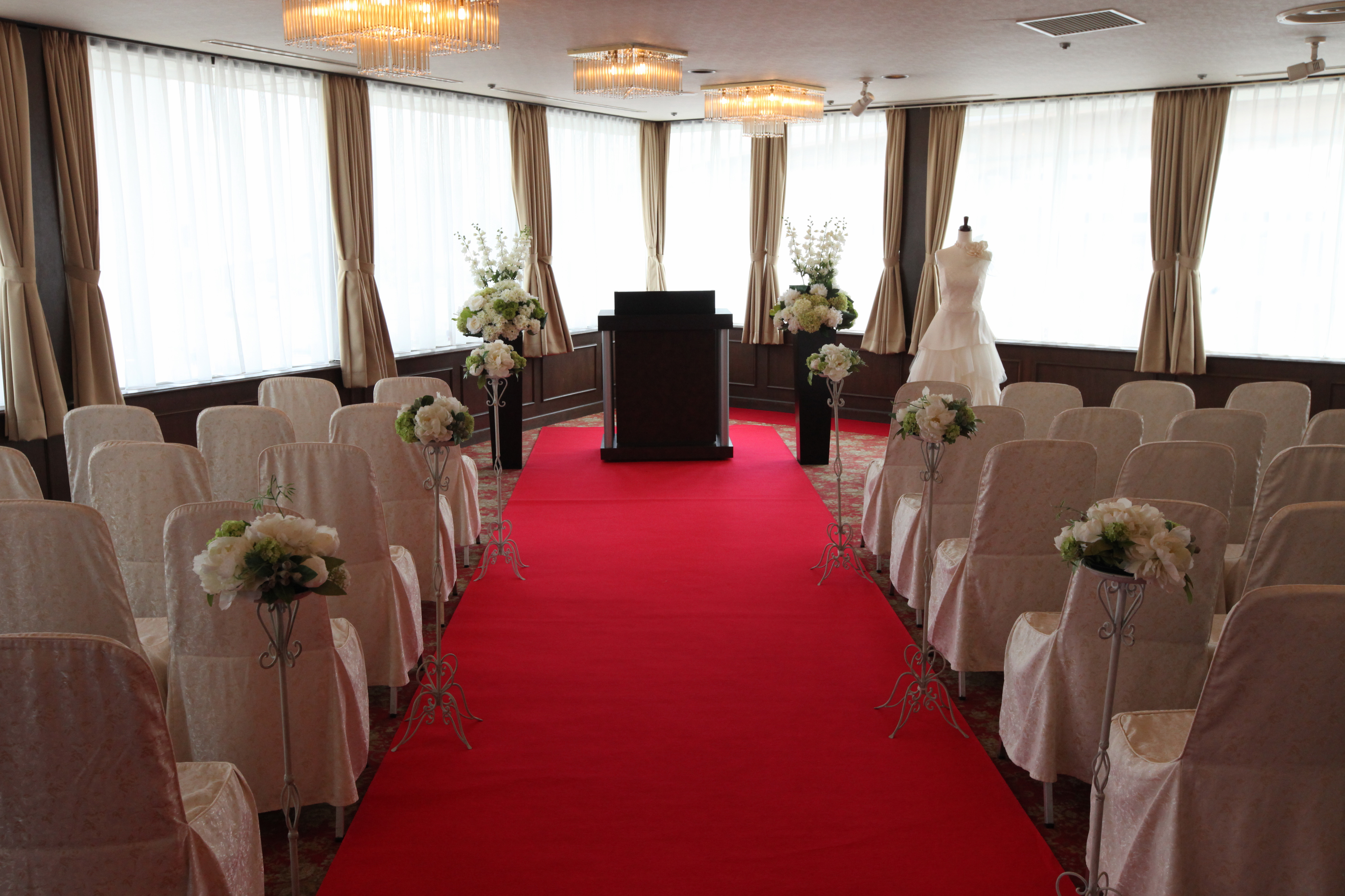 もちろん式だって♪真っ赤なバージンロード。